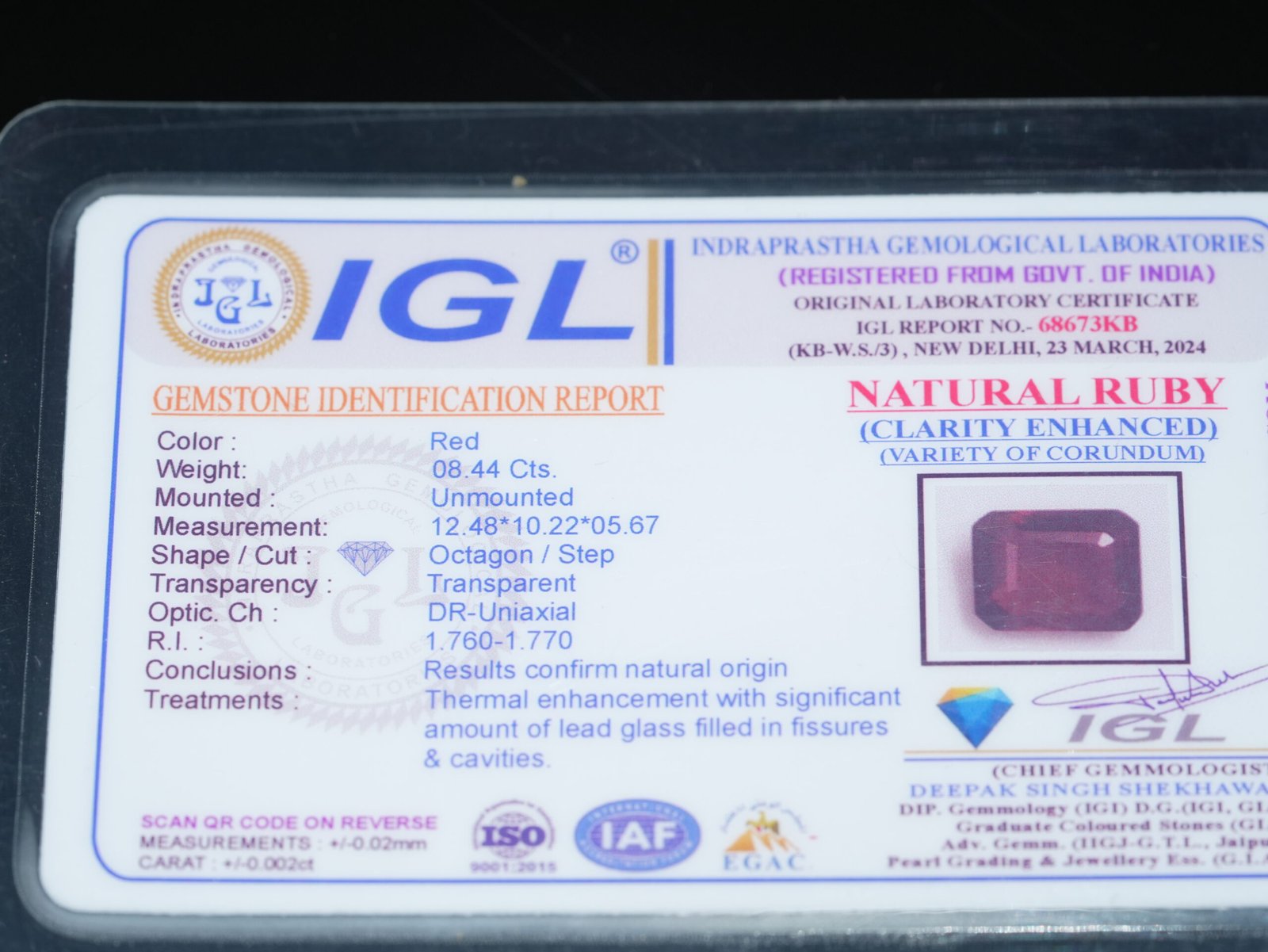 Certification: GIL – Gemological Institute Laboratory Certified (Natural-Origin Ruby • Glass-Filled for Clarity Enhancement)