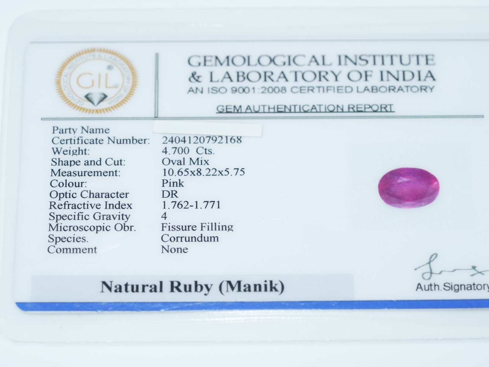 Certification: GIL – Gemological Institute Laboratory Certified (Natural-Origin Ruby • Glass-Filled for Clarity Enhancement)