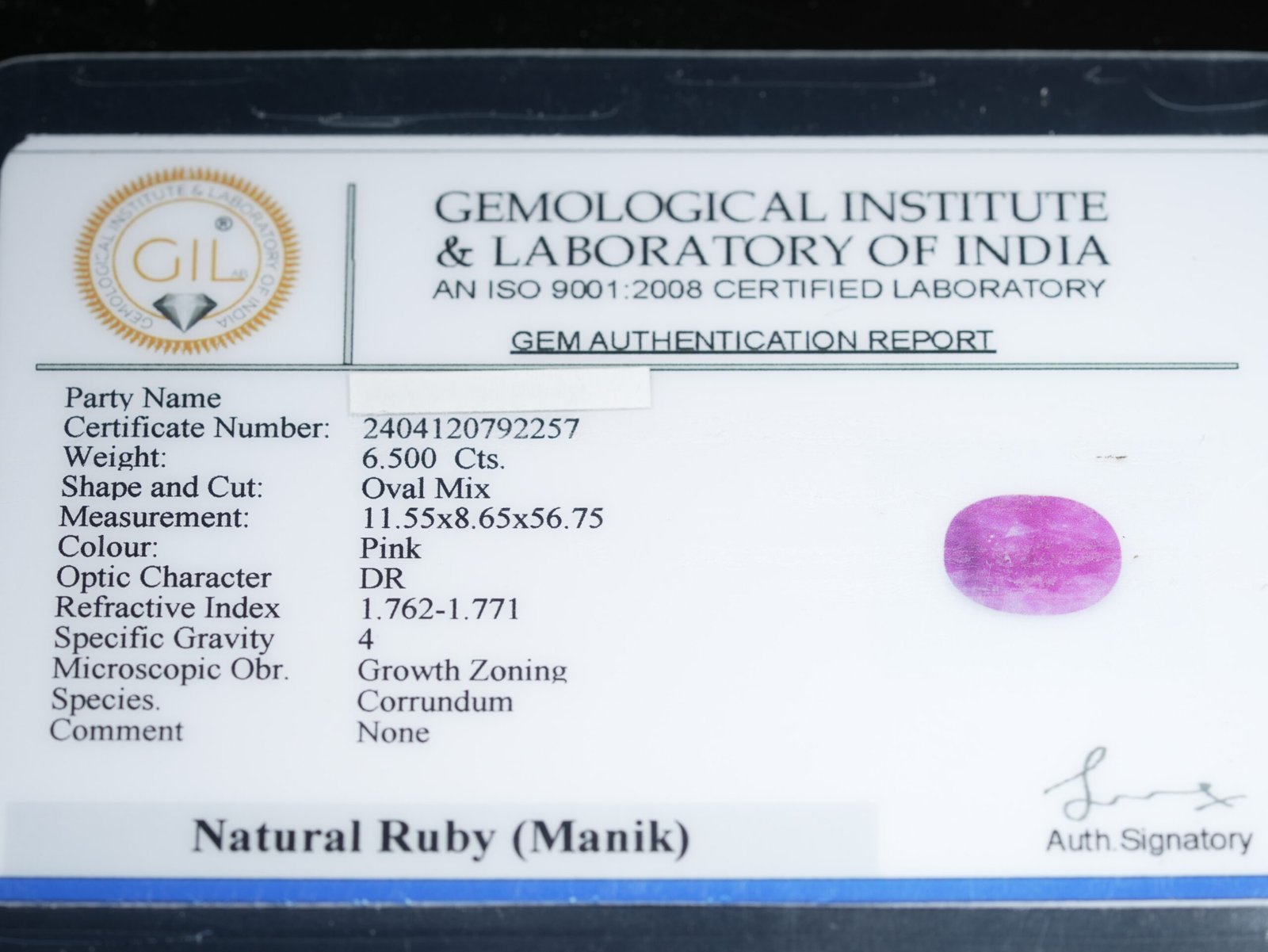 Certification: GIL – Gemological Institute Laboratory Certified
