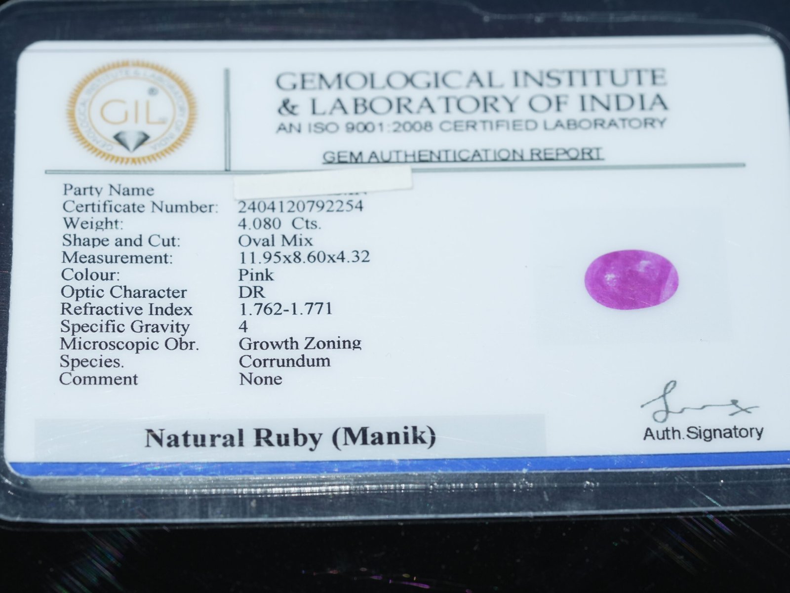 Certification: GIL – Gemological Institute Laboratory Certified